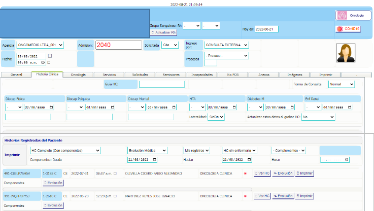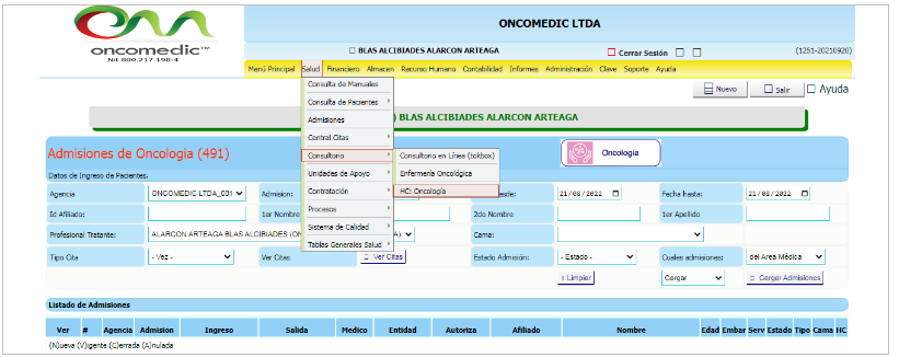 Donde: La actividad se realiza en oncomedic y es consignada en la Ficha de atención farmacéutica,en el botón “apoyo medicamentos” en la pestaña historia clínica de cada admisión