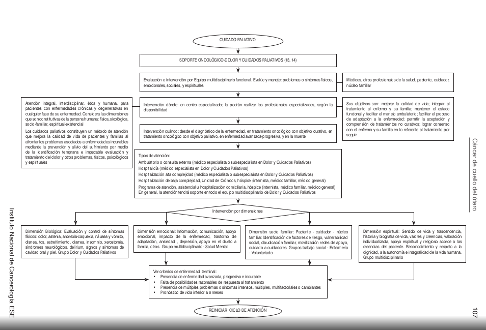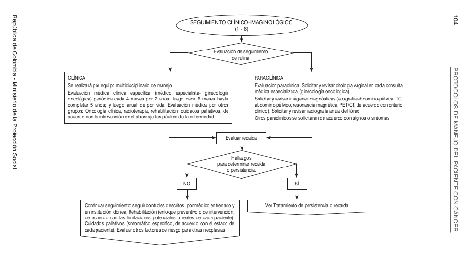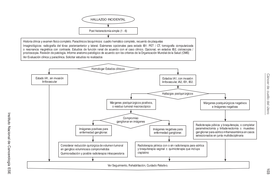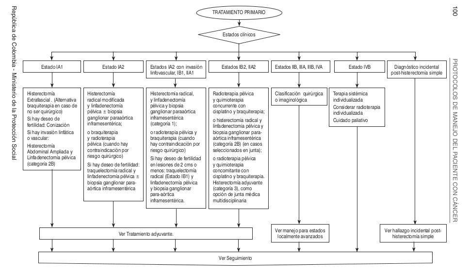 El instituto nacional de cancerologia publico la 1 versión del Protocolo de manejo de la paciente con cáncer de cuello del útero en el 2009 y fue actualizado noviembre del 2010 como un aporte para el adecuado manejo de esta entidad patológica.