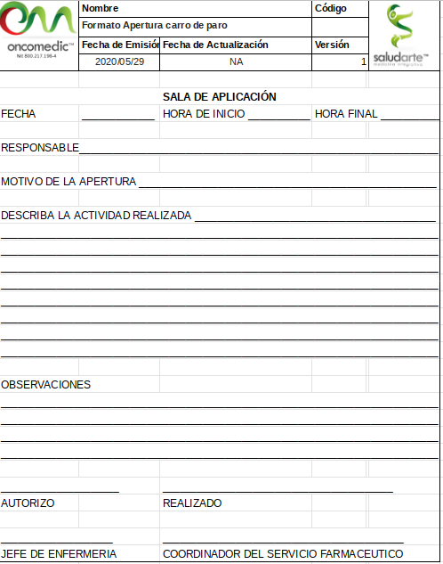 - Garantizar la disponibilidad del carro de paro en la sala de aplicación.
