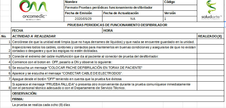 - Velar por el correcto funcionamiento de los equipos biomédicos del carro de paro, (todo lo anterior debe reposar en las respectivas hojas de vida de cada uno de los equipos).