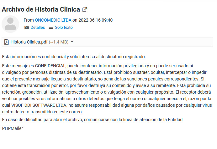 Realizando este procedimiento, el paciente recibe las ordenes médicas e historia clínica en un documento pdf, en el correo que esta registrado en la admisión del usuario.
