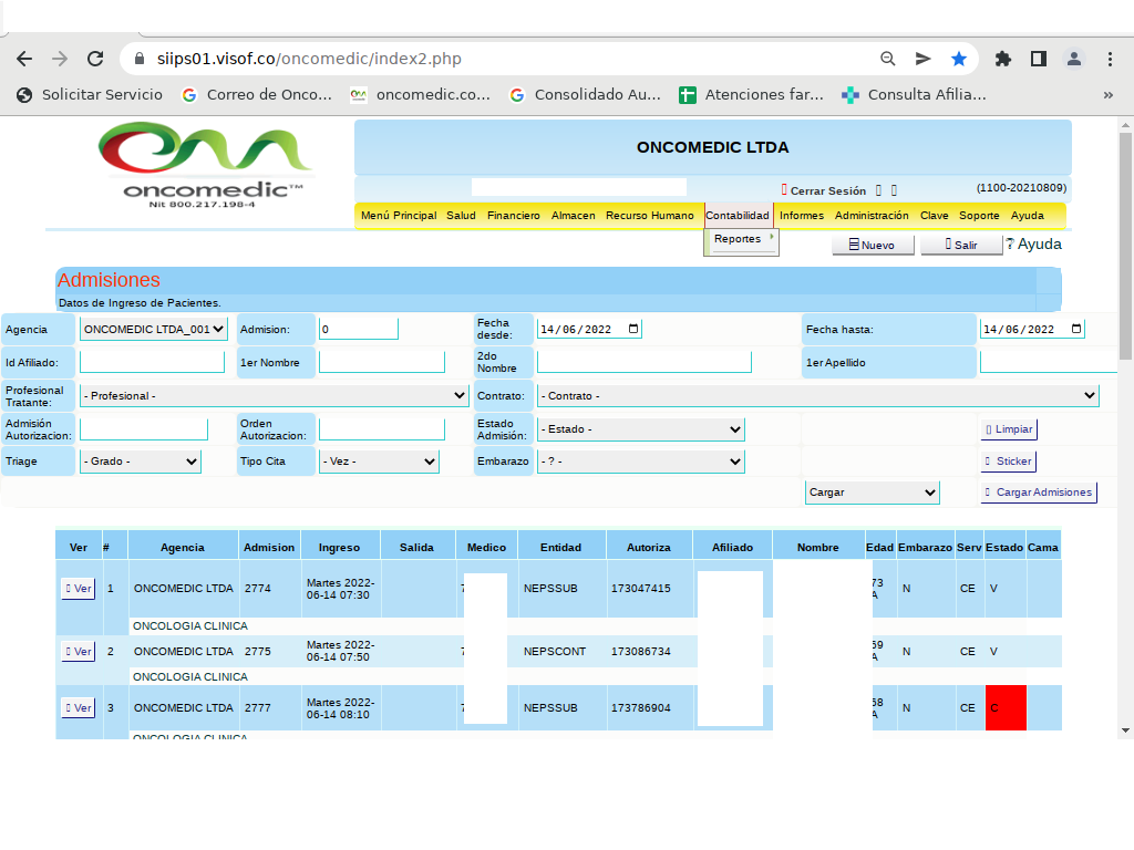 • Información del prestador: autorizaciones dirigidas para ONCOMEDIC LTDA, Nit: 800 217 198-4.