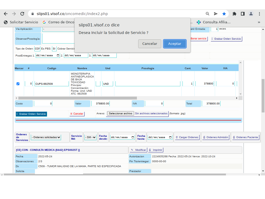 - Fotocopia de la orden médica poliquimioterapia 992505-992504