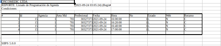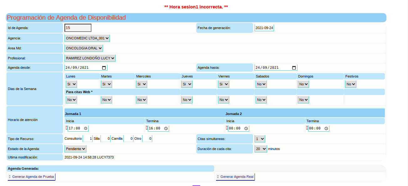 - Generar Agenda de prueba: genera un Excel que permita verificar agenda.