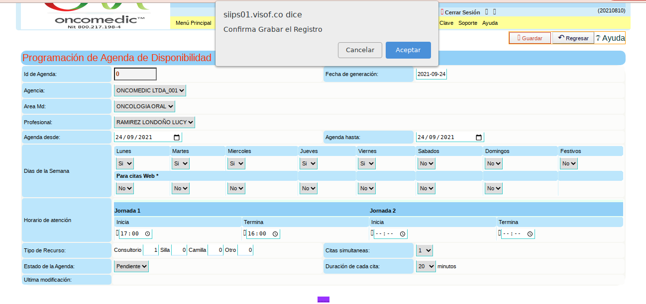 - Ingresar a la dirección siips01.visof.co/oncomedic/click
