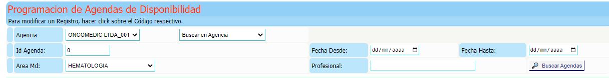 - Seleccionar el área médica del profesional a realizar la agenda (Area MD), Dar click en el botón Nuevo