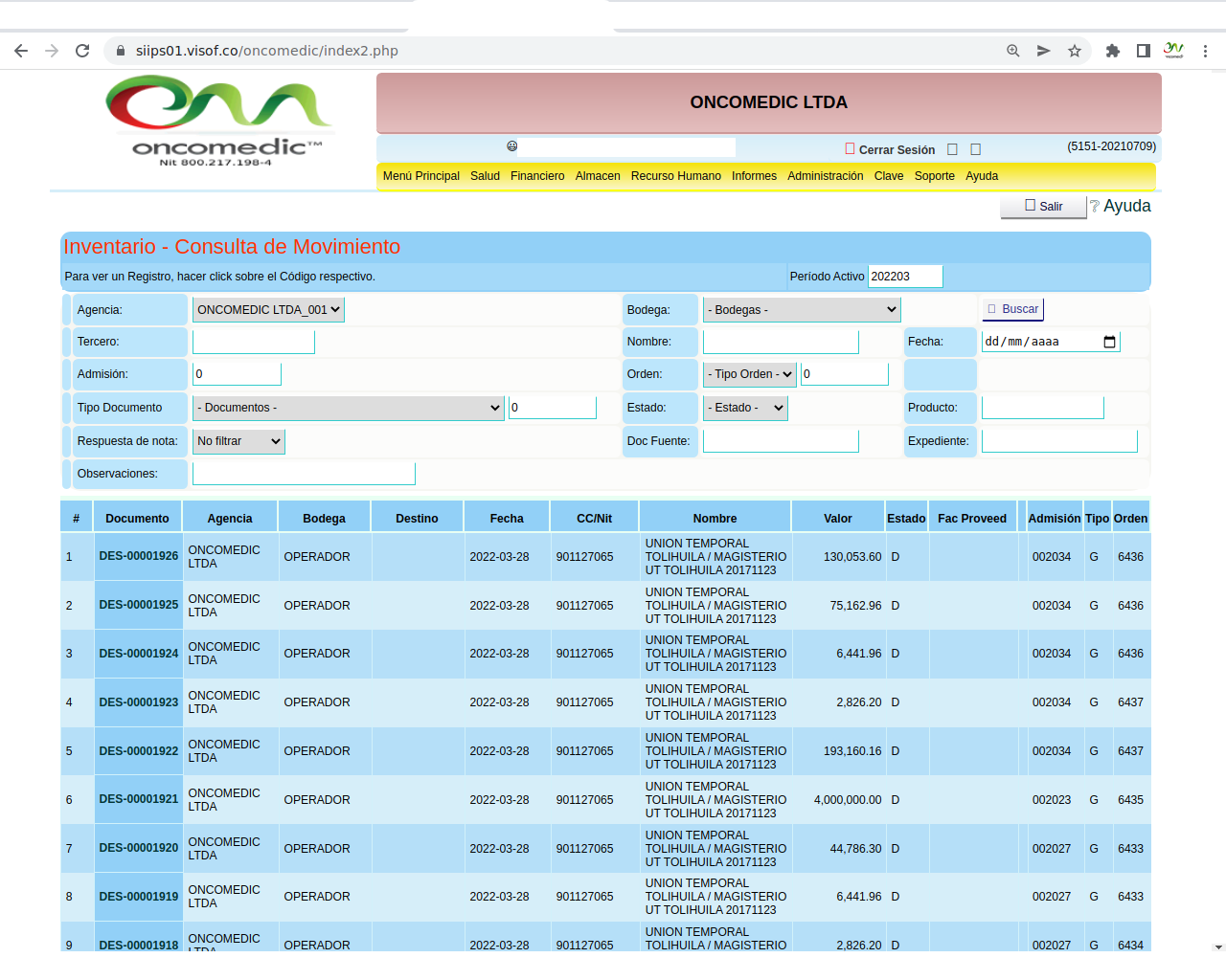 • Almacén – consulta de movimientos