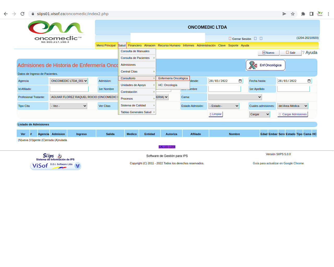 Para realizar la programación se deben seguir los siguientes pasos: • Salud – Consultorio- enfermería Oncológica