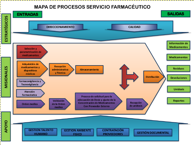En respuesta a los continuos cambios se ha generado una reorganización empresarial y una nueva planificación de las estructuras existentes en consonancia con estas actividades, de tal manera que el servicio farmacéutico realiza un aporte significativo a los procesos  misionales de la institución aportando al progreso de la organización y el sector articulado a los principios de seguridad, eficiencia y efectividad generando beneficio tanto económico como social evitando las pérdidas y minimizando la generación de residuos de medicamentos  siendo de este modo también mas amigable con el entorno.