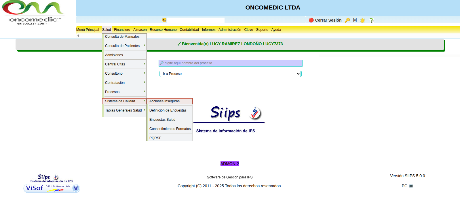 Encuesta de percepción de seguridad del paciente para funcionarios de Oncomedic