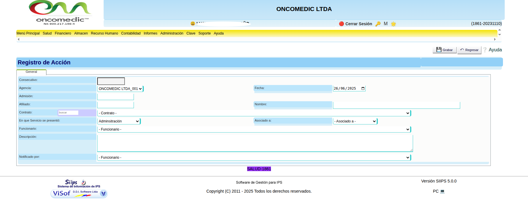 • Identificar los de riesgos en la atención de Oncomedic ltda