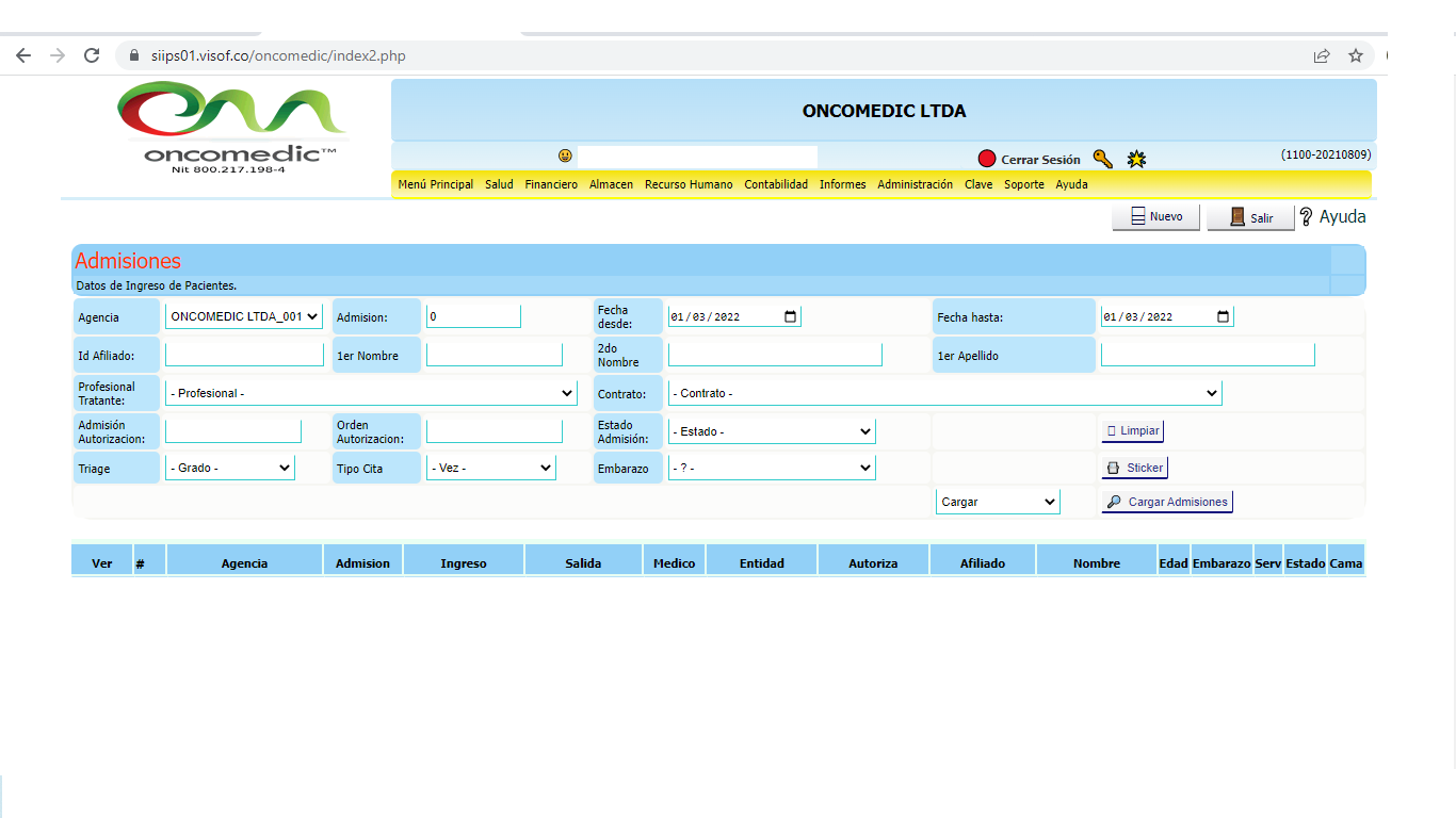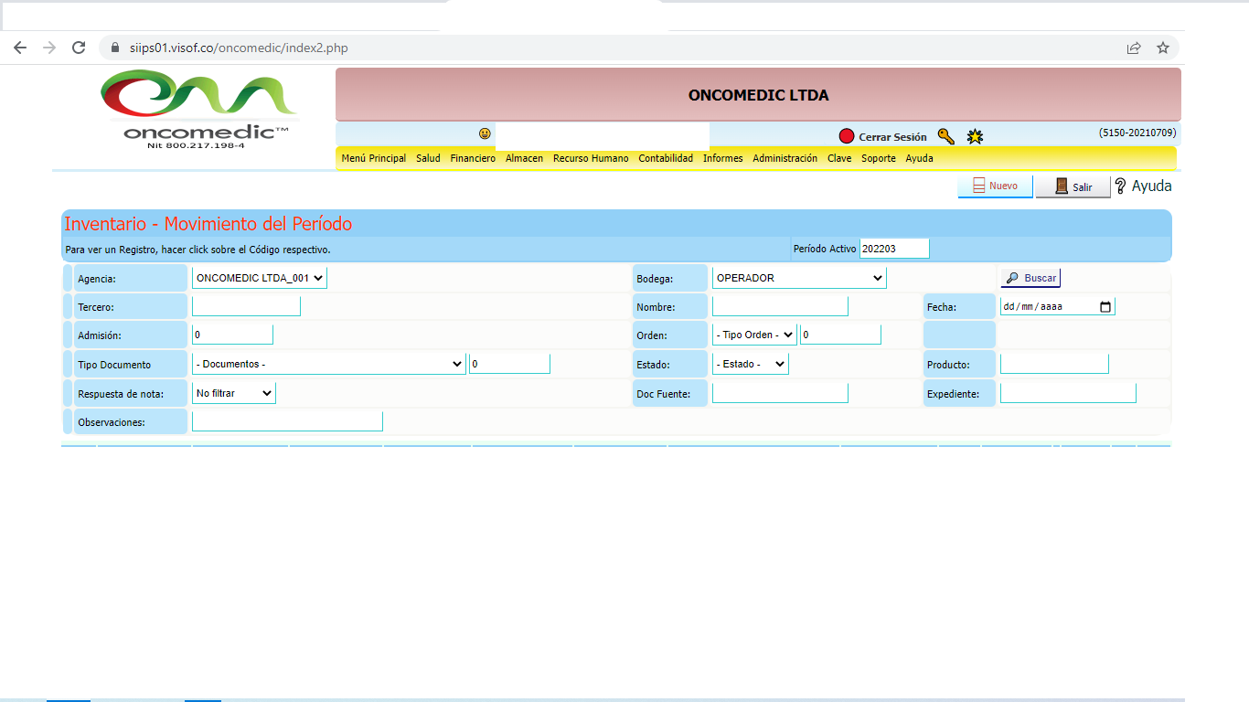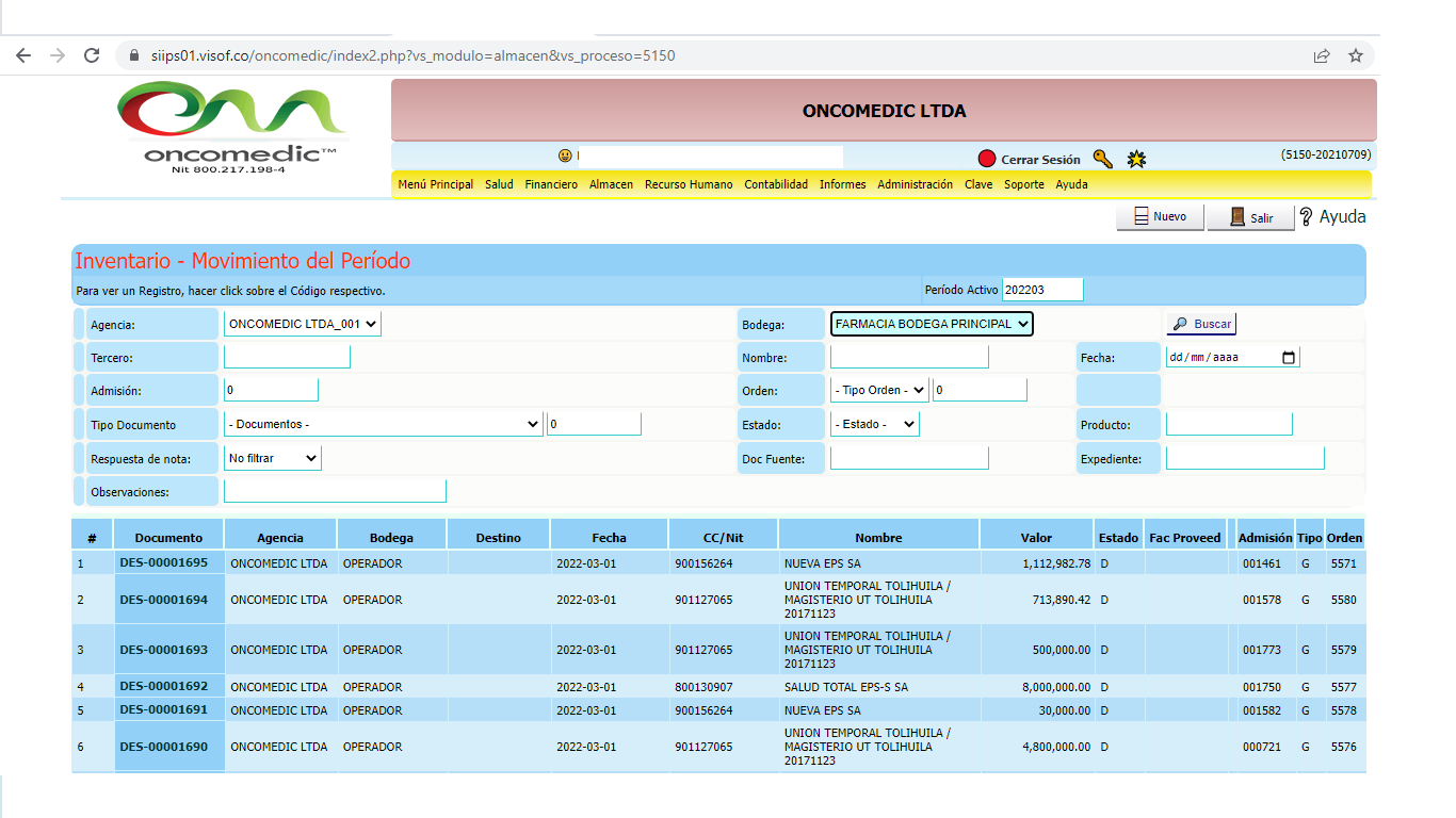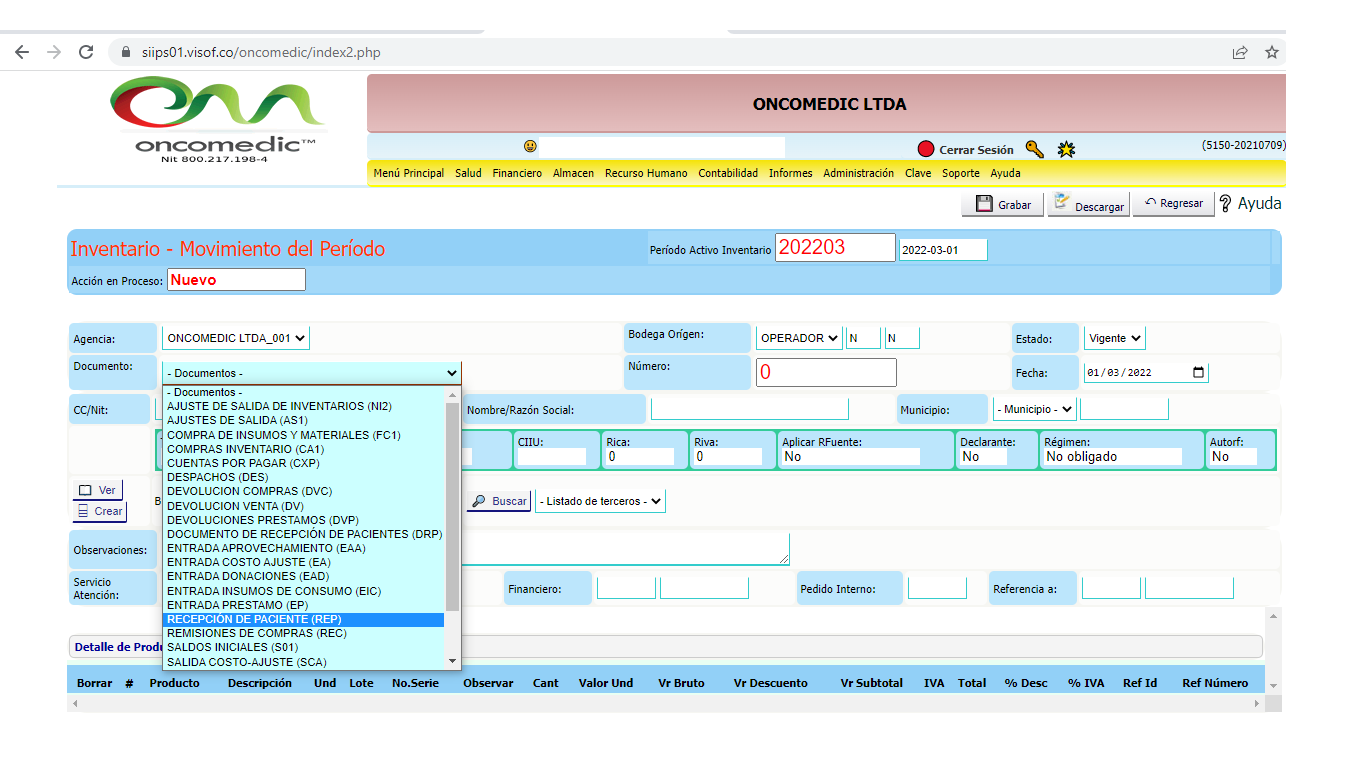 • En el campo“CC/Nit” se debe colocar el Nit de Oncomedic ltda.