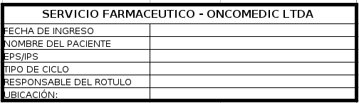 • Bodega principal de farmacia (se guardan insumos adquiridos por de Oncomedic).