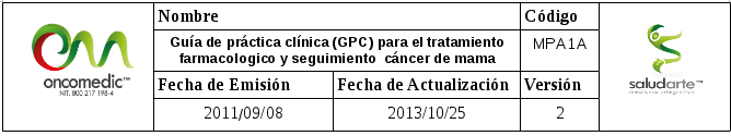 Acorde a la propuesta del ministerio de protección social y articulada a las características de oncomedic ltda la organización adapta las guías, de modo que aplica sin modificación las recomendaciones en torno a manejo farmacológico y de seguimiento que aplican a la organización.